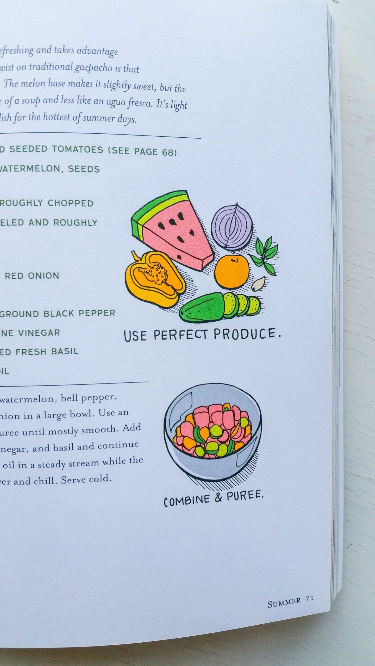 Representative recipes mentioned across retailer and excerpt pages include Fava Bean Crostini, Tomato & Watermelon Gazpacho, and Parsnip Hummus—each designed to celebrate a single, fresh ingredient rather than bury it under cheffy complexity.