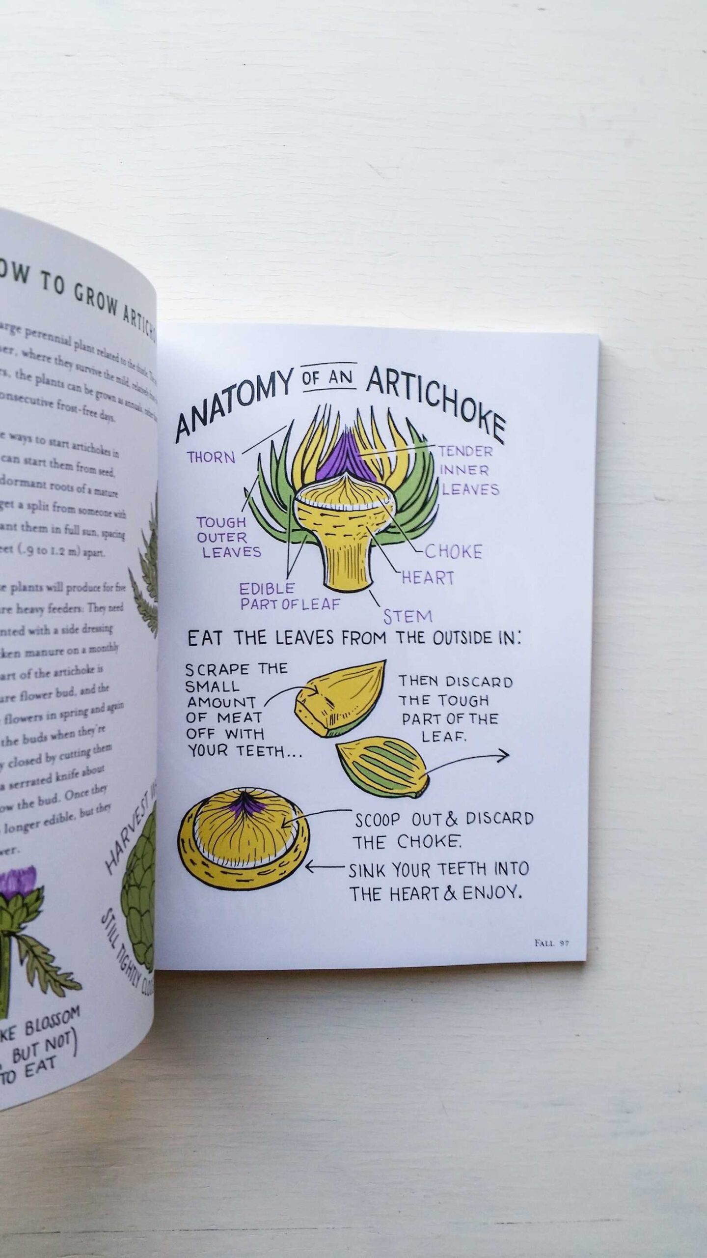 Hardison’s art is the book’s superpower. Instead of paragraphs about “true leaves,” trellising angles, or the proper way to peel a fava, you get clean, hand-lettered diagrams and sequential illustrations that show exactly what to look for. Her visual style—refined on the Illustrated Bites blog—feels like a friendly mentor looking over your shoulder, not a lecture. For visual learners and kids helping in the kitchen garden, this is gold.