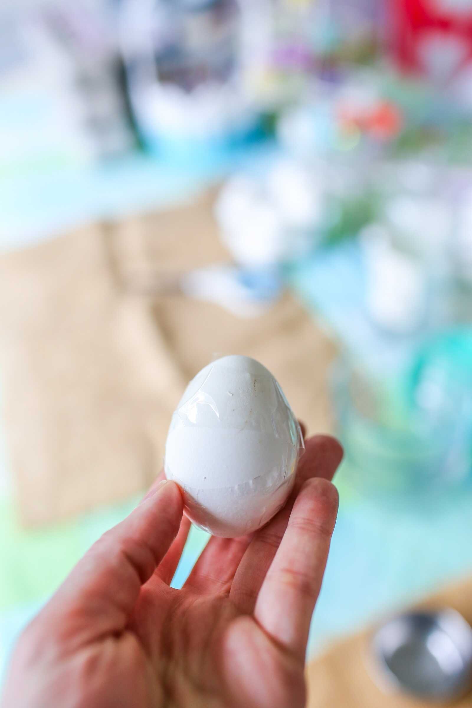 Hard boil your eggs and let them cool completely. Pat dry with a paper towel so the tape will stick properly.